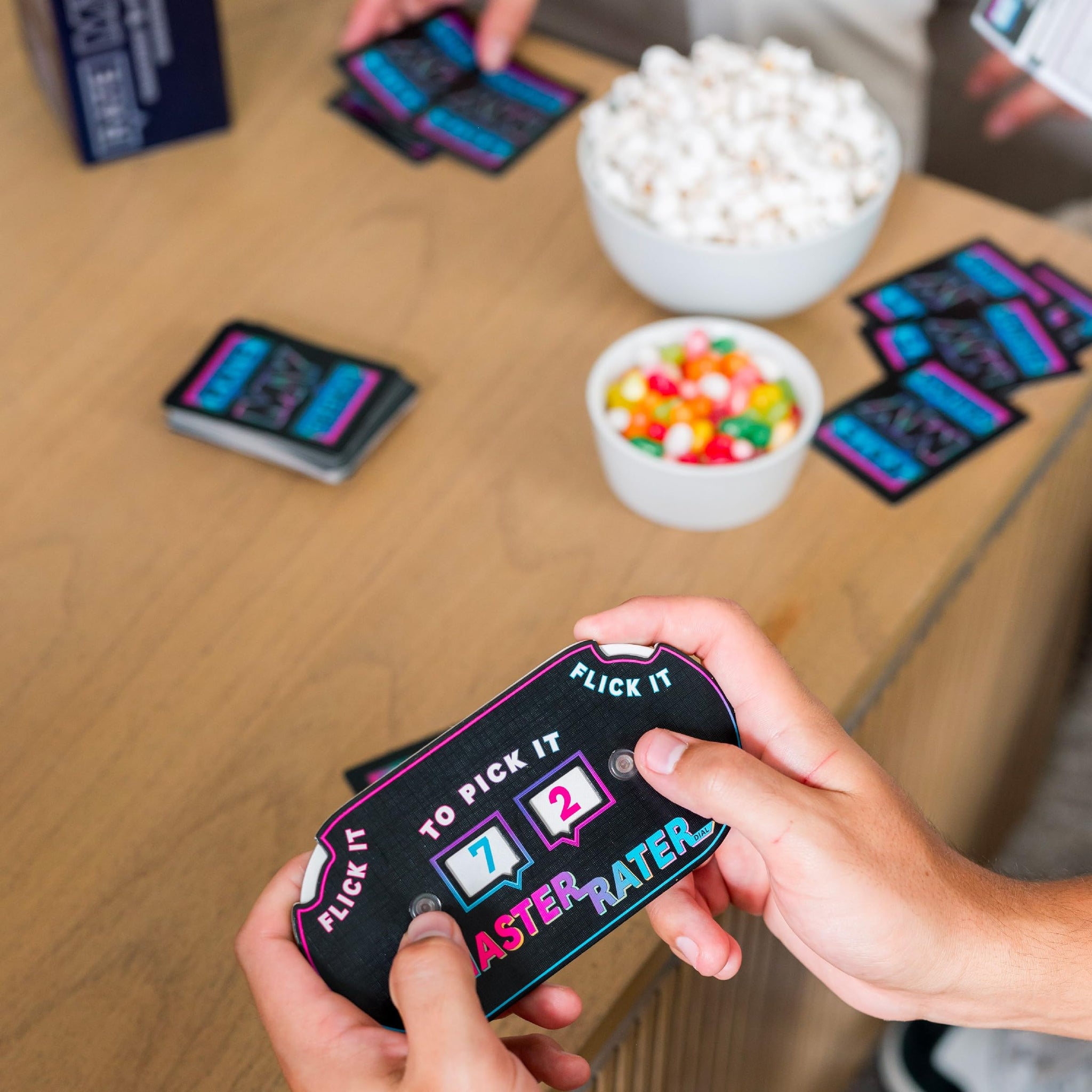 RATE MY FRIENDS is the eyebrow-raising, gut-busting game where you rate yourself on a 1-10 scale on a wide variety of different attributes: How attractive you are, how moody you are, how funny or hairy. It doesn't end there, though... now your friends have to rate you too! The goal is for their number to match yours. The catch? Players aren't just rating one thing at a time, which means that your high number might be a sign your friends think you're really thoughtful, or that they think you're really smelly… or maybe a little of both!